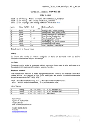 LESPROGRAMMA ( AVONDCURSUS ) MCSA/ MCSE 2003