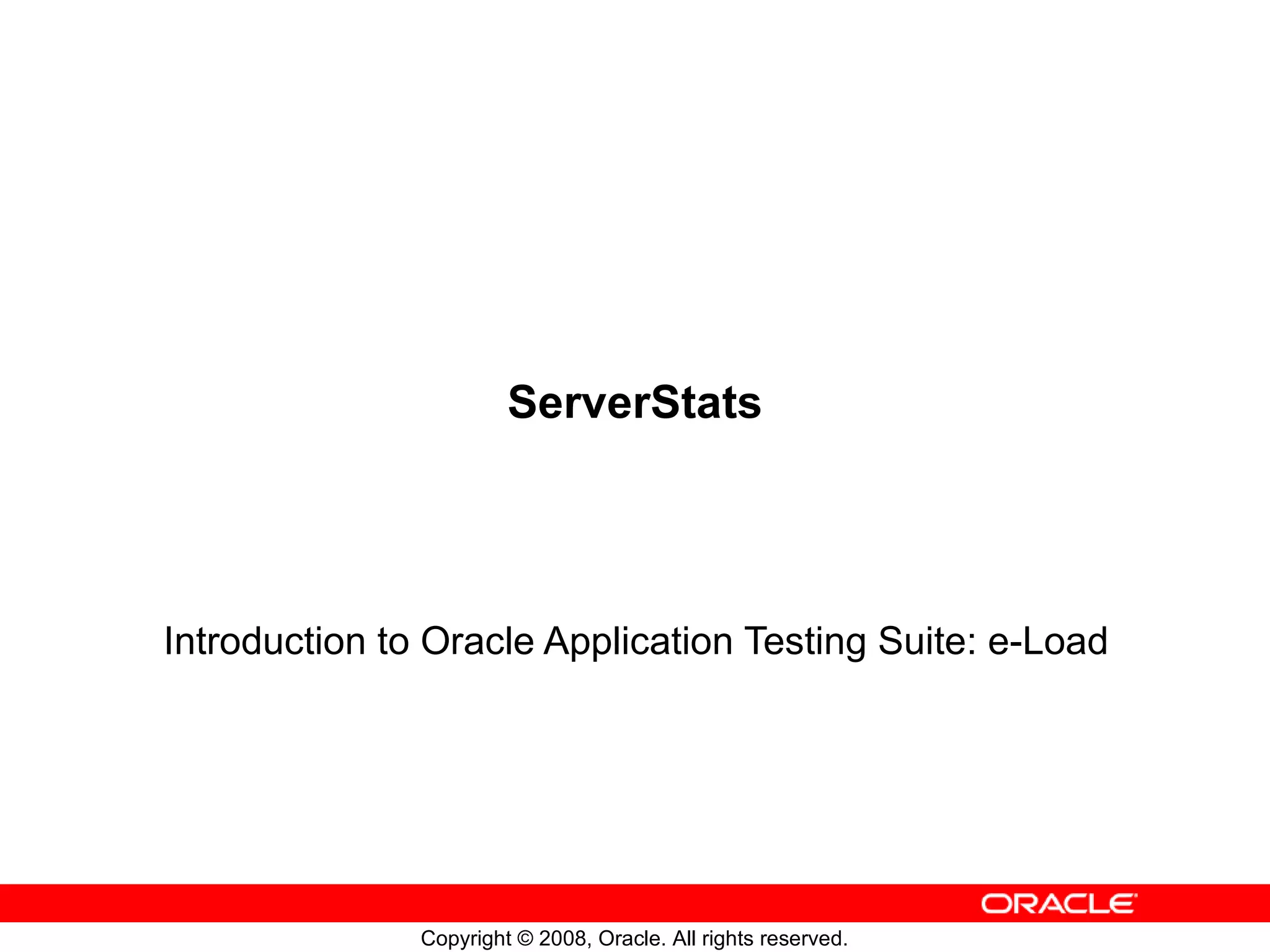 The document introduces Oracle Application Testing Suite's e-Load and ServerStats tools. ServerStats can monitor performance across application tiers in real-time with charts and alarms. It saves data to e-Reporter to correlate with load test results from e-Load for bottleneck analysis. Key server metrics discussed include CPU usage, memory usage, hits/requests per second, queue times, and disk and database activity. The document provides instructions for configuring new ServerStats monitors and metrics profiles to collect specific performance data from web servers, application servers, and database servers during load tests.