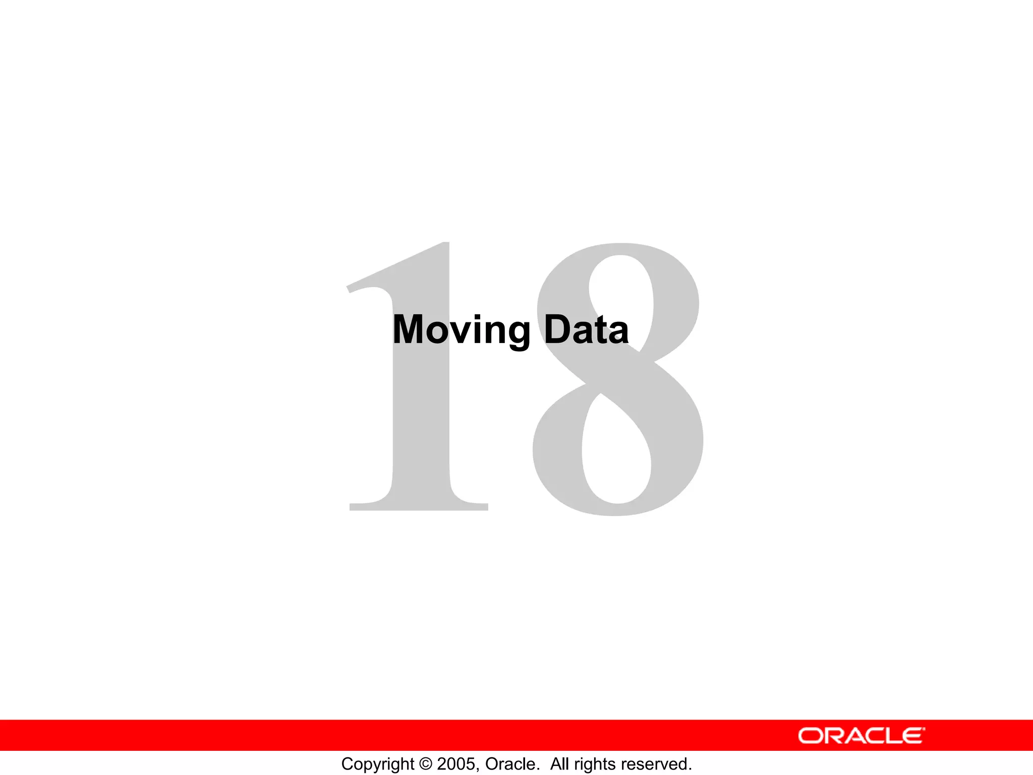 This document discusses several methods for moving data in and out of Oracle databases, including: