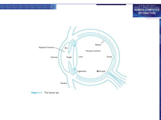 - Vision is the primary sense but has limitations in visual acuity, color perception, and ability to interpret signals. The eye physically receives images which the brain then interprets.