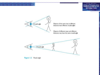 - Movement abilities like reaction time and accuracy are important considerations in interface design. Fitts' law describes time to hit targets based on distance and size.