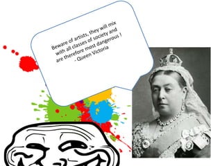 This document provides expectations and rules for student behavior in an art classroom. Students are expected to maintain an environment conducive to learning by participating appropriately, following instructions, and treating others and equipment with respect. Disruptive behavior such as challenging the teacher, using phones, eating or drinking in class, or excessive tardiness will not be tolerated. One warning will be given before a sanction is issued for continued inappropriate behavior.
