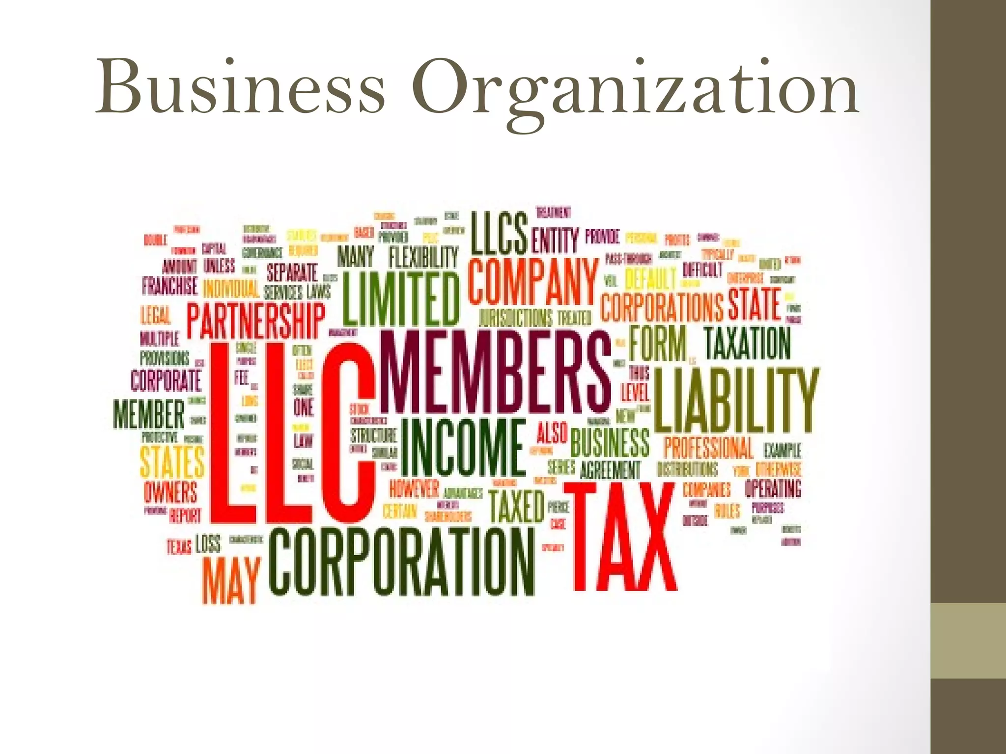 The document discusses different types of business organizations including sole proprietorships, partnerships, corporations, and franchises. A sole proprietorship is a business owned and managed by a single individual and makes up 75% of all businesses but only 6% of sales. Partnerships are owned by two or more individuals and make up 7% of businesses and 5% of sales. Corporations are legal entities owned by stockholders, make up 20% of businesses, and 90% of all sales. Franchises pay fees to a parent company for the exclusive right to sell a certain product in an area. The document compares the positives and negatives of each type of organization and discusses factors like liability, taxes, regulations, and control. It also