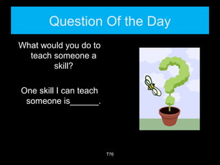 This document contains a lesson plan for day 4. It includes a question of the day about teaching skills, a read aloud story called "Friends" about a turtle and elephant who become friends, lessons on short vowel sounds and fluency, and exercises on characters, setting, vocabulary and writing statements and questions. The last part instructs students to finish and peer review descriptive paragraphs.