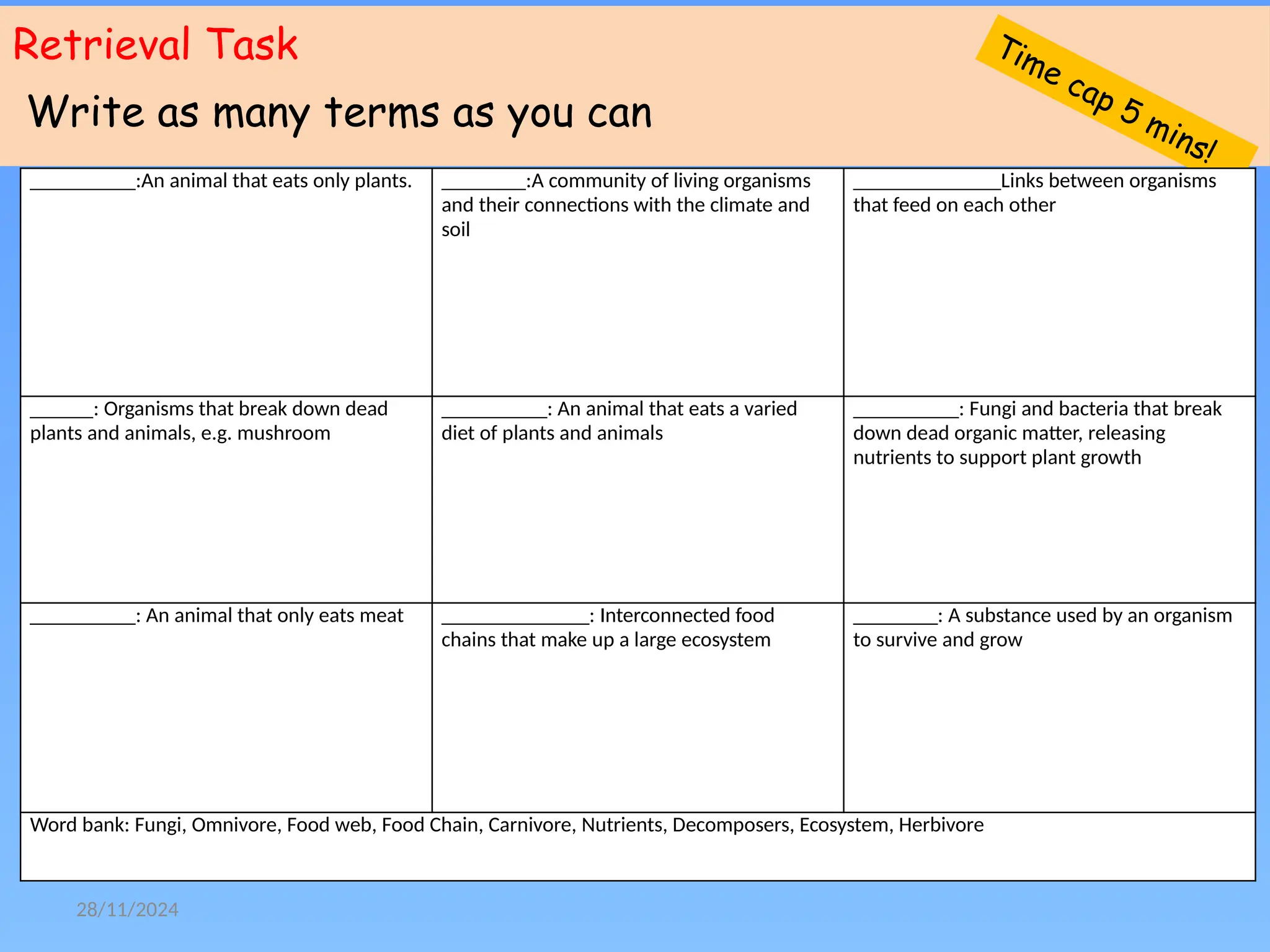 The document outlines the components of ecosystems, including biotic factors (like plants and animals) and abiotic factors (like sunlight and soil). It describes various roles of organisms, such as herbivores, carnivores, omnivores, and decomposers, alongside the concepts of food chains and food webs. Additionally, it suggests activities to observe and document local biodiversity, encouraging personal connections with local ecosystems.