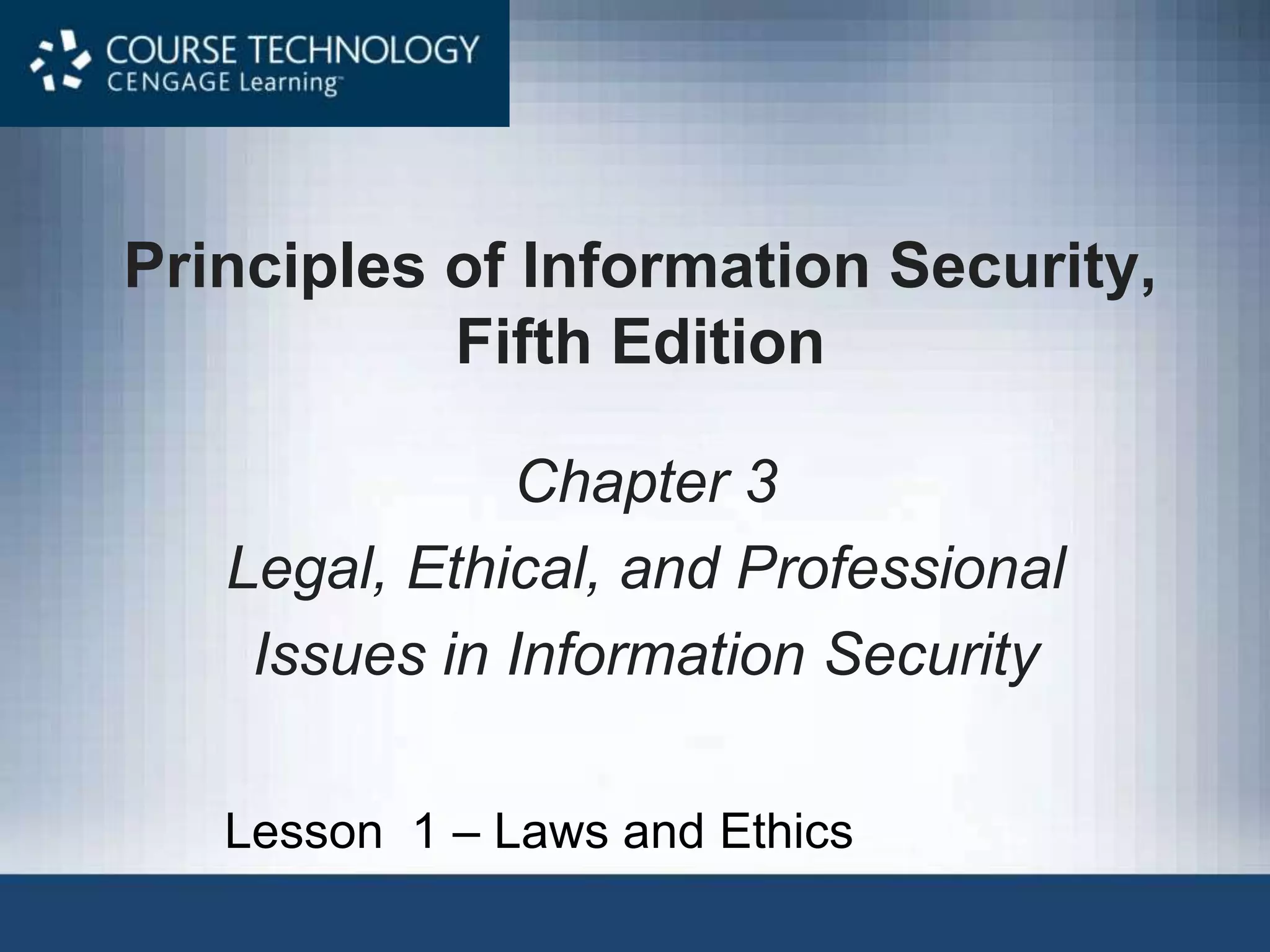 This document discusses laws, regulations, ethics, and professional organizations related to information security. It covers the differences between laws and ethics, types of laws, relevant US laws including the Computer Fraud and Abuse Act and privacy laws like HIPAA. Organizational liability, policies versus laws, and the need for legal counsel are also addressed. The goal is to help information security practitioners understand the legal environment and minimize risks.