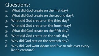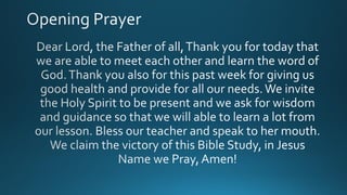The document outlines a 6 day plan with parts and sections labeled a through d, with the 7th day concluding. It references watching a video on the provided website and quotes Genesis 1:31. The plan appears religious in nature with references to praising God and including a closing prayer.