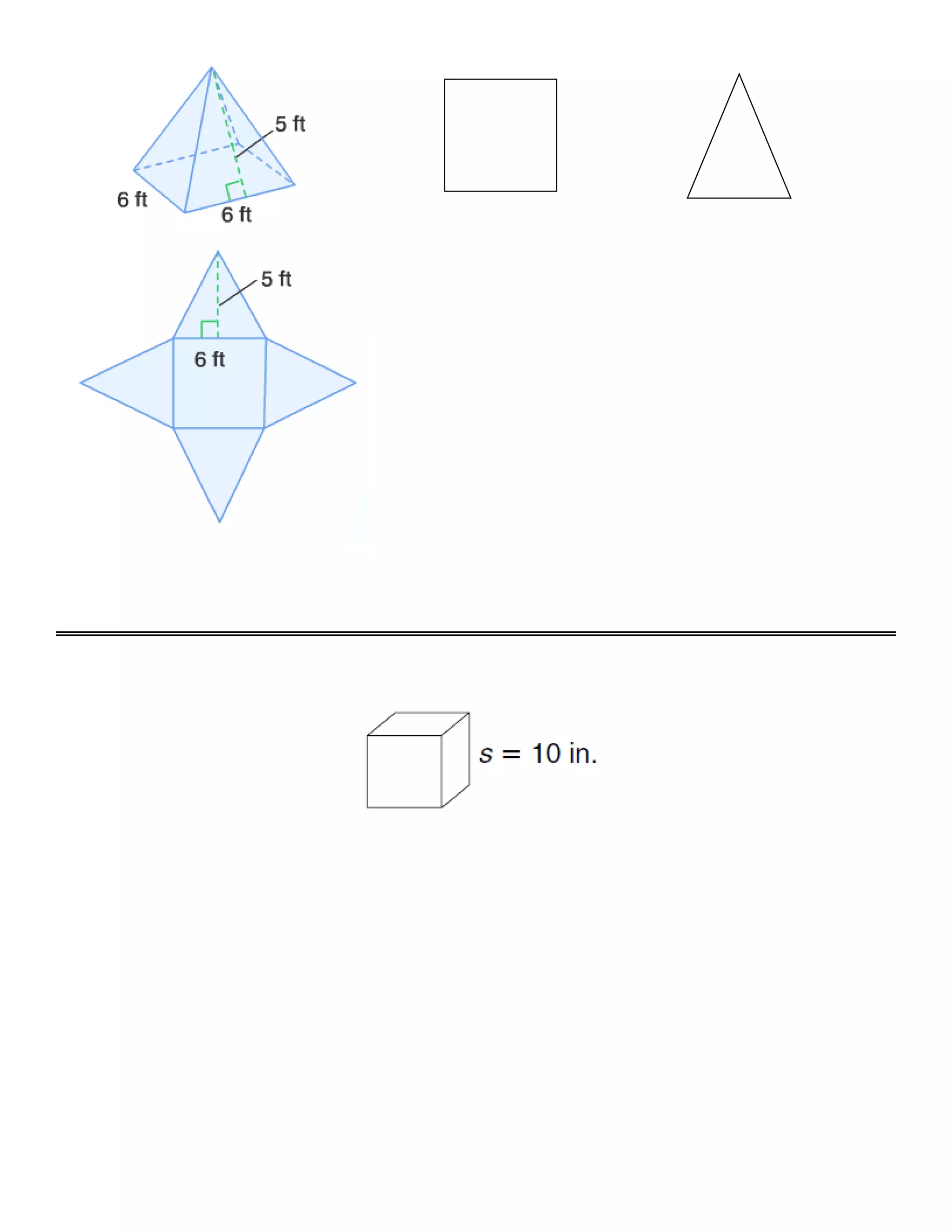 The document provides instructions for calculating the surface area of various 3D shapes. It defines surface area as the sum of the areas of all surfaces of a solid figure. It then works through examples of finding the surface area of a triangular prism and rectangular prism by calculating the area of each face and adding them together. Students are provided practice problems to find the surface area of additional prisms.