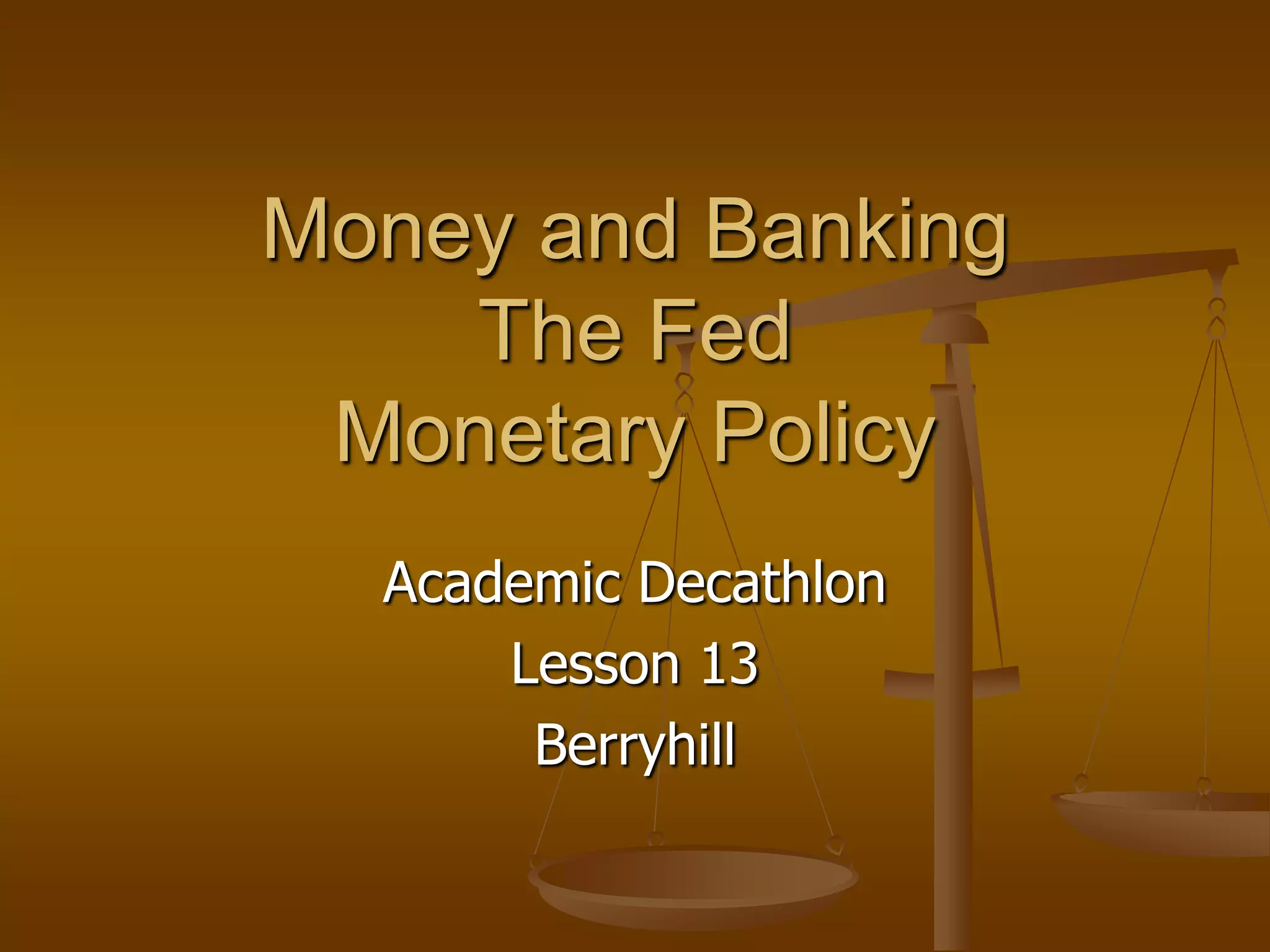The document discusses the functions of money, different definitions of money supply (M1, M2, M3), the Federal Reserve System and its role in conducting monetary policy. It explains that the Fed uses tools like open market operations, reserve requirements, and the discount rate to influence the money supply and interest rates. By increasing or decreasing the money supply and interest rates, the Fed can impact aggregate demand and the overall economy.
