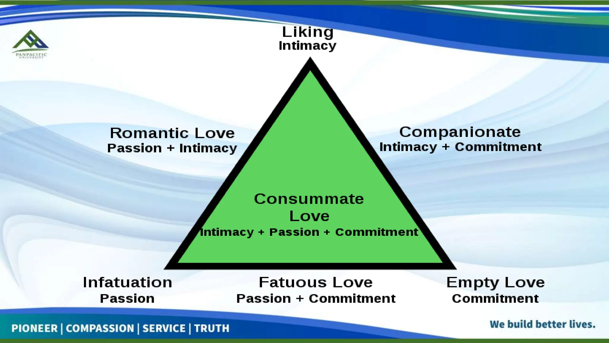 The document discusses various topics related to gender, sexuality, and relationships. It begins by defining key terms like gender, sexuality, and psychosocial. It then discusses three psychological domains - affective, behavior, and cognition. It explores concepts like self-awareness, intimacy, socialization, and different types of love. Specifically, it outlines Sternberg's triangular theory of love and describes the primary types (eros, ludus, storge) and secondary types (agape, mania, pragma) of love. It also discusses Chapman's five love languages - words of affirmation, quality time, physical touch, acts of service, and receiving gifts.