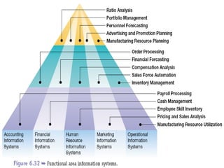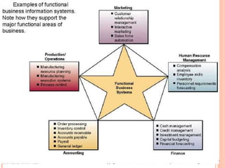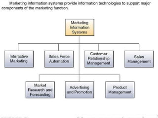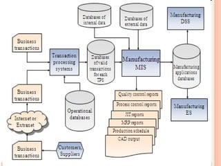 An MIS provides managers with information to support decision making and feedback on daily operations. Reports are generated from transaction data and used to analyze different business aspects. Each MIS is an integrated collection of subsystems organized along functional lines within an organization. MIS uses computer hardware, software, databases and models to support operations, management, analysis, decision making and provides standard formatted reports.