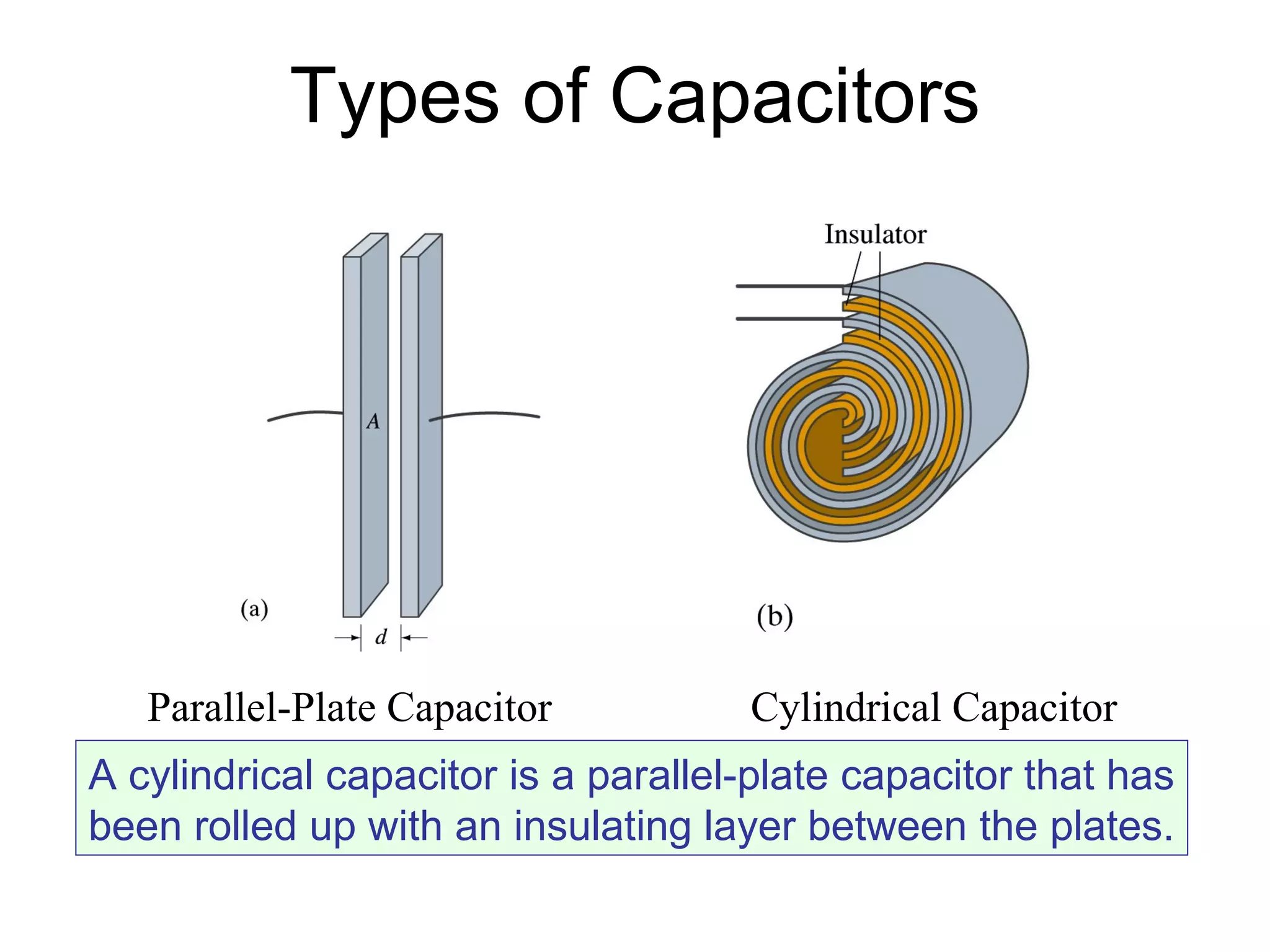 A capacitor stores electric charge by having two conductors separated by an insulator. Common applications include computer memory, camera flashes, and surge protectors. The amount of charge stored is proportional to the potential difference between the plates. When a dielectric is placed between the plates, it increases the capacitance by a factor called the dielectric constant. Energy is stored in a capacitor as 1/2 CV^2 and is released when the capacitor discharges through a circuit.