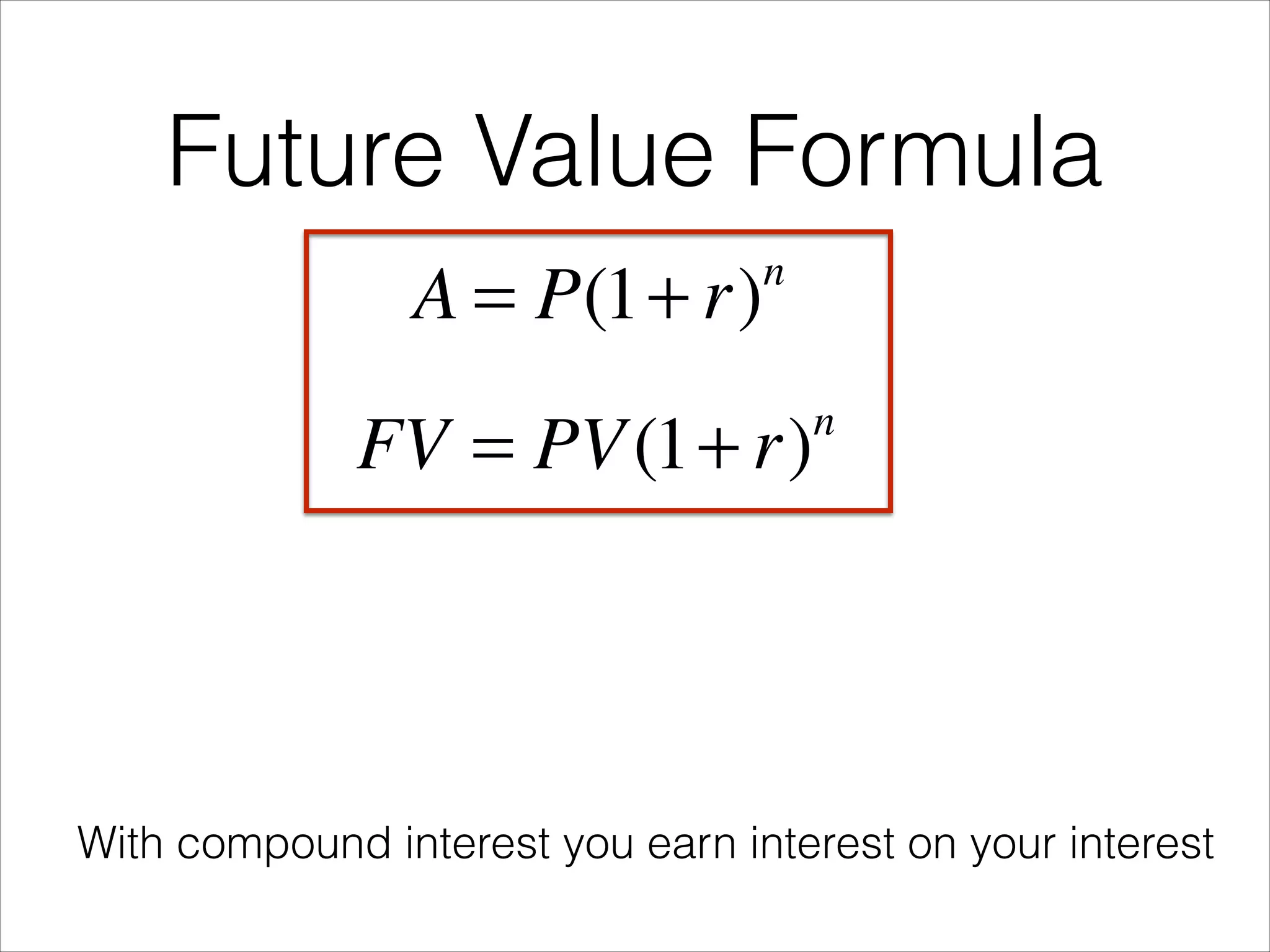 This document provides three examples of calculating future and present values of investments using compound interest formulas. The first two examples show calculating the future value after 7 years of an initial $4000 investment at 5.5% annual interest, with the second example compounding interest monthly rather than annually, resulting in a higher future value. The third example calculates the present value of an annuity worth $11,375 in 5 years at 6% interest per year.
