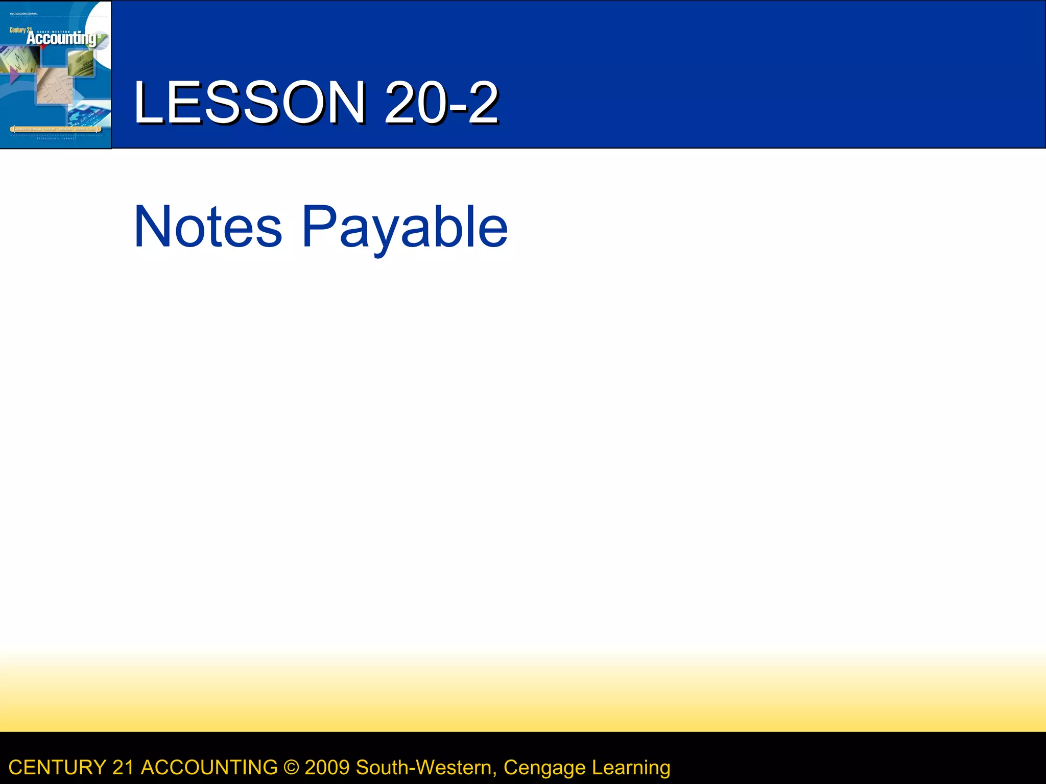 The document provides examples of accounting entries for notes payable. It describes signing a 90-day, 6% note for $20,000 and the journal entries to record it. It then discusses paying the principal and interest of $20,300 for the note at maturity. Another example shows signing a 90-day, 12% note for $4,000 to extend an accounts payable and the entries to record it. Finally, it discusses paying $4,120 for the principal and interest of that note at maturity.
