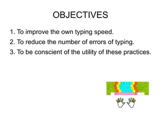 This document provides instructions for improving typing speed and accuracy through an online typing test and practice. Learners are asked to access a typing practice website, select the "Test" box to start a typing assessment, and then click "DEFAULT" and "START" to begin a standard test to enhance their skills.