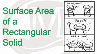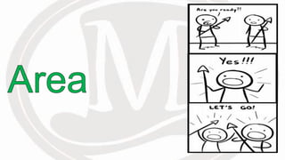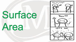 This document discusses formulas for calculating the area and surface area of different shapes. It provides formulas for calculating the area of rectangles, squares, triangles, parallelograms, rhombuses, trapezoids, circles, as well as the surface area of prisms, cylinders, cones, spheres, pyramids. It also discusses converting between different units of volume. Examples are provided to demonstrate how to apply each formula.