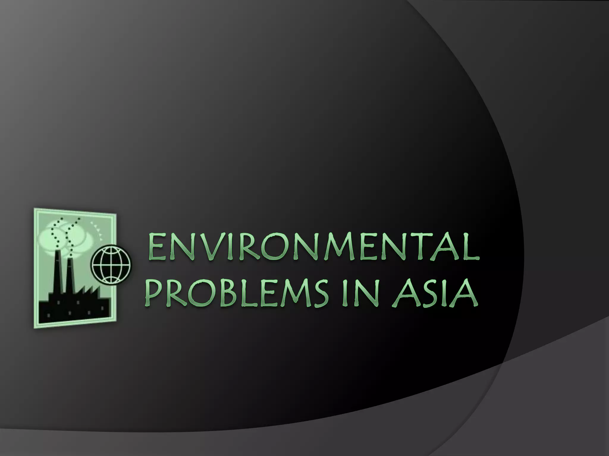 Major environmental problems in Asia stem from unprecedented economic growth and increasing populations. This has led to issues like desertification, salinization, pollution, waste disposal problems, land degradation, biodiversity loss, and deforestation. Uncontrolled urbanization and industrialization have severely degraded air and water quality through pollution, threatening ecosystems and human health. Solutions require balancing environmental protection with continued development.