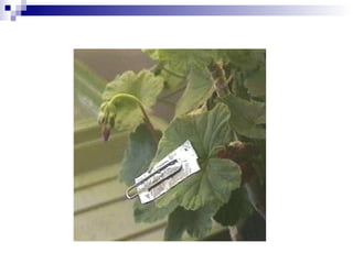 The document describes a series of experiments to test the factors involved in photosynthesis. It tests for the presence of starch after exposing plants to different conditions such as removing carbon dioxide, chlorophyll, or sunlight. The experiments involve destarching plants, exposing them to conditions, then testing for starch using iodine to determine if photosynthesis occurred. Graphs show that starch is only produced when conditions like carbon dioxide and light are present.