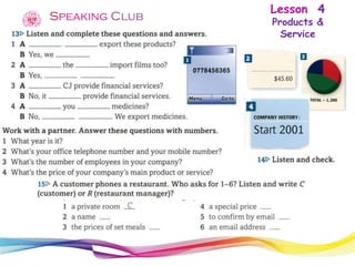 This lesson discusses products and services. It focuses on the importance of understanding customer needs in order to develop products and services that meet those needs. Understanding customer needs is key to developing successful offerings that customers will value.