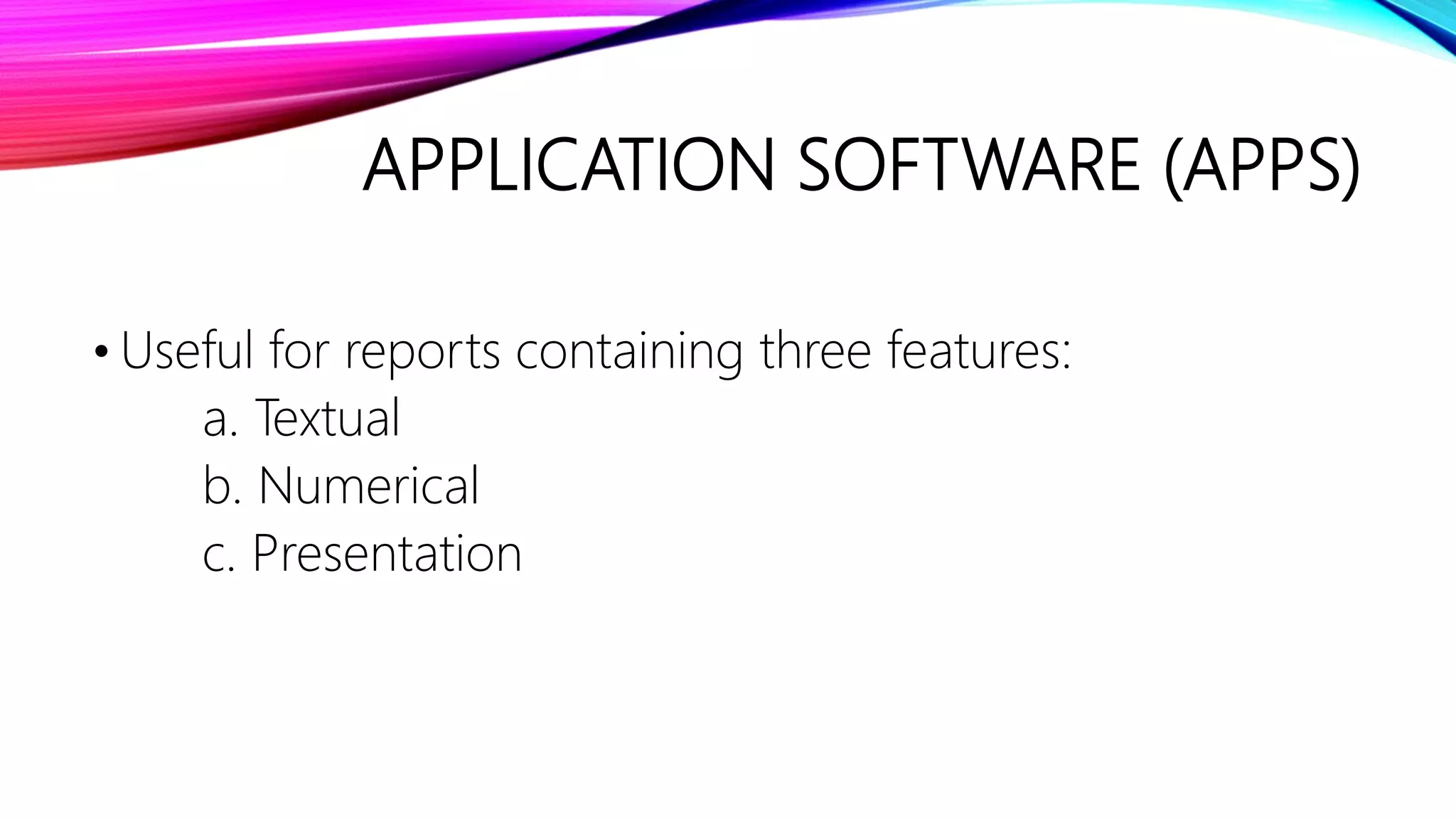 The document outlines the development of ICT content through application software features, focusing on mail merge, custom animations, hyperlinking, and integrating images. It details the components and steps of mail merge, types of animations in PowerPoint, and methods for incorporating external materials in word processors and Excel. Additionally, it highlights the use of advanced formulas for computations in Excel worksheets.
