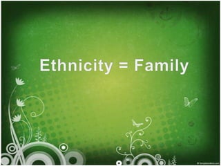 This document discusses ethnolinguistic groups in Asia. It defines ethnolinguistic groups as people who share a distinct language and culture that gives them a unique identity. Ethnolinguistic groupings are based on ethnicity and language. The document then provides information on major ethnolinguistic groups in different regions of Asia, including details on the Dravidians in South Asia, the Javanese and Balinese in Southeast Asia, and the Ainu people in East Asia. It concludes by noting the importance of studying ethnolinguistic diversity in Asia to foster understanding between cultures.