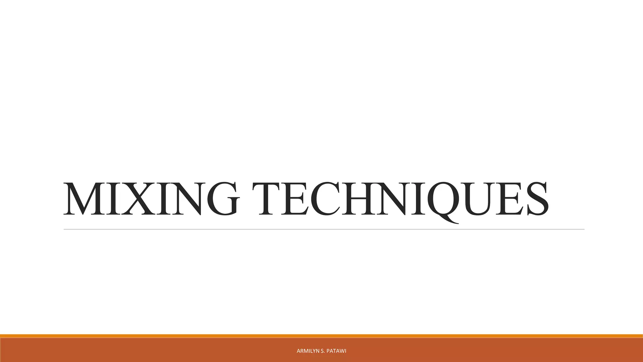 This document discusses various mixing techniques used in baking, including sifting, creaming, kneading, stirring, beating, whipping, cut and fold, folding, cutting in, scalding, and tips for working with ingredients. Sifting separates coarse particles, creaming incorporates air into flour and batter, kneading develops gluten in dough, and whipping incorporates air into eggs and cream. The tips section emphasizes preparing ingredients and tools in advance, using standard measuring tools, and cleaning as you work.