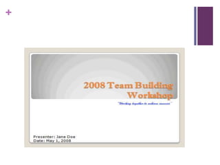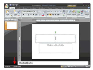 1) Apply a theme to slides which sets colors, fonts, and effects for a professional look. Additional background styles can then be applied to modify the theme.