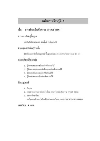 หน่วยการเรียนรู้ที่ 5 เรื่อง การสร้างกล่องข้อความ