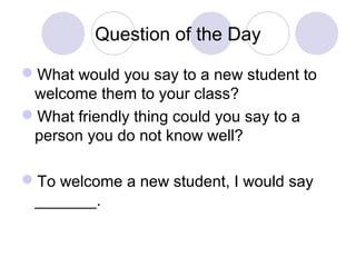 This document provides a lesson plan for day 2. It includes questions of the day, lessons on root words and their endings, identifying characters and settings in stories, alphabetical order, vocabulary words like "image" and "popular", grammar reviews of commands and exclamations, and exercises for students to practice these concepts.