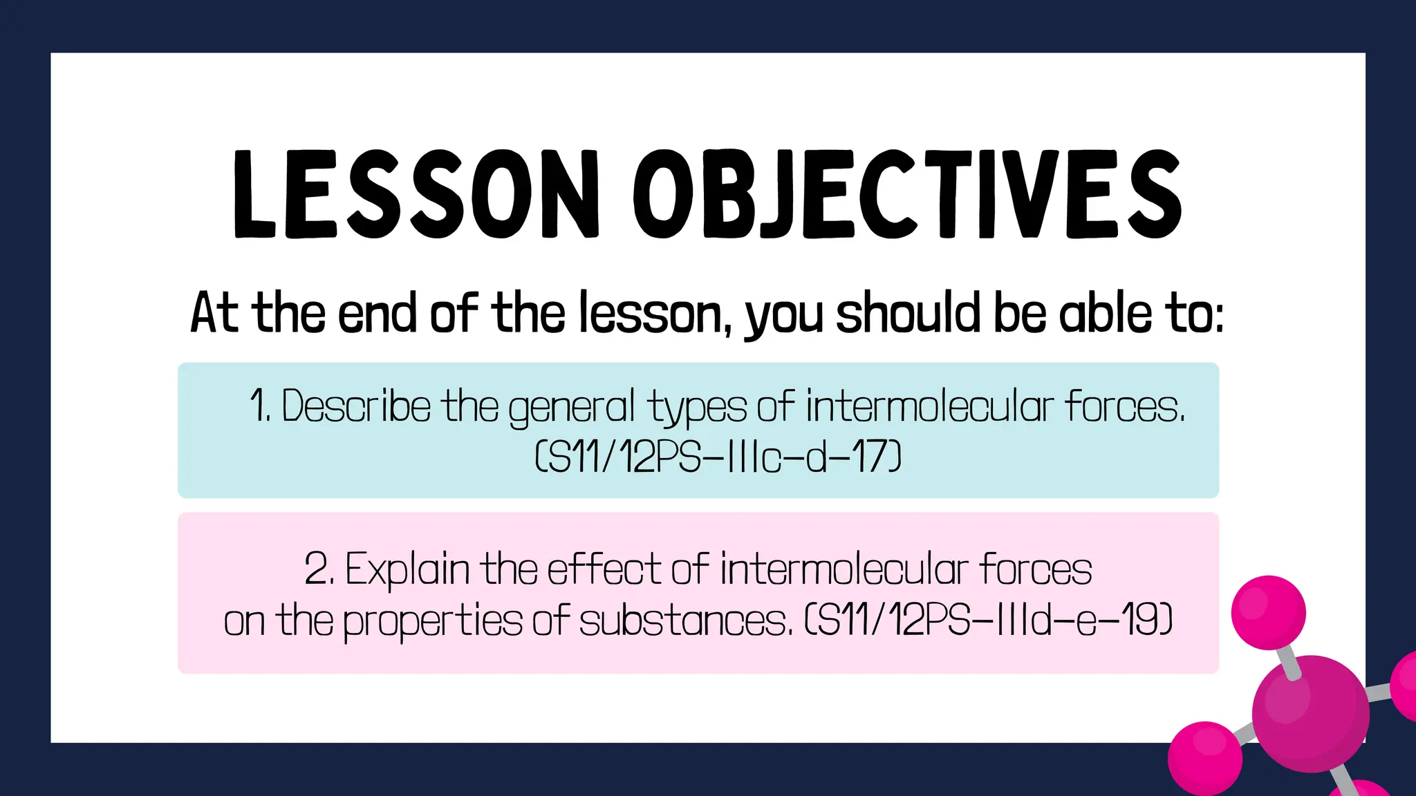 This document discusses intermolecular forces. It begins by defining adhesion and cohesion. It then discusses the four main types of intermolecular forces - London dispersion forces, dipole-dipole forces, ion-dipole forces, and hydrogen bonding. London dispersion forces are the weakest and exist between all molecules. Dipole-dipole forces are moderate in strength and exist between polar molecules. Ion-dipole forces are strong and result from attraction between ions and polar molecules. Hydrogen bonding is the strongest type and occurs when hydrogen is bonded to fluorine, oxygen, or nitrogen. The strength of intermolecular forces influences various physical properties like boiling point and viscosity.