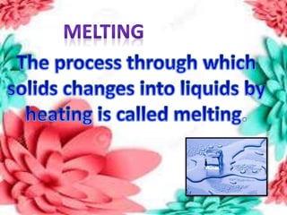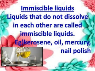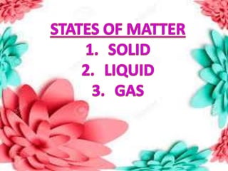 This document discusses the organization of objects and systematic study of them. It then describes three states of matter - solids, liquids, and gases - based on the strength of attraction between particles and how closely packed the molecules are. It also discusses miscibility of liquids and conductivity of materials based on their hardness.