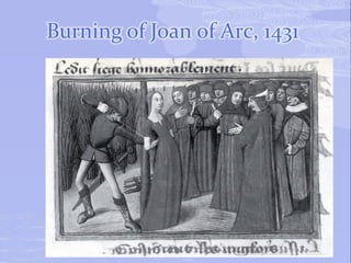 1) It outlines key events in the development of religious tolerance, from the Inquisition to the Toleration Act.