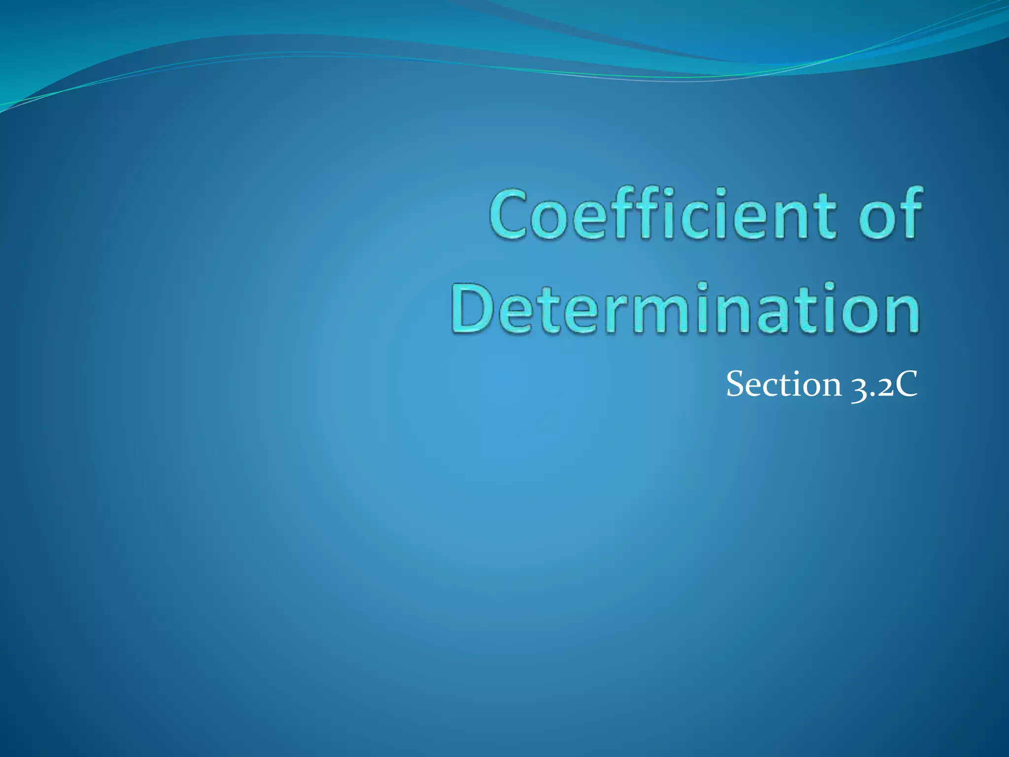3) A calculation example finding the coefficient of determination to be 0.83 for a dataset relating height and shoe size, meaning approximately 83% of the variation in shoe size can be explained by height.