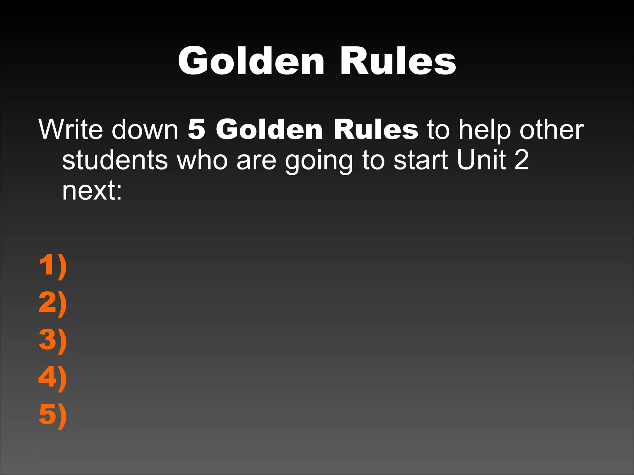 The document provides guidance for students completing Unit 2, including 5 golden rules for organization, learning objectives about research and order, requirements for a completed portfolio with background research, and questions to summarize the key lessons and skills developed in Unit 2.