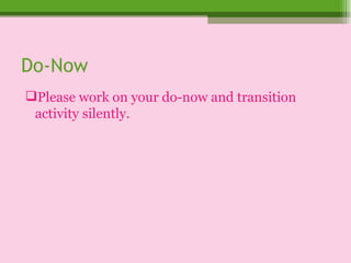 The document outlines the daily agenda for a civics class, including completing a do-now activity, announcements, a review of the previous lesson, and an introduction to the electoral college system for electing the US president. It indicates they will learn about the electoral college, compare it to Harry Potter returning, and discuss the 2008 election. Students are asked to consider whether the electoral college is the best system for selecting the president.