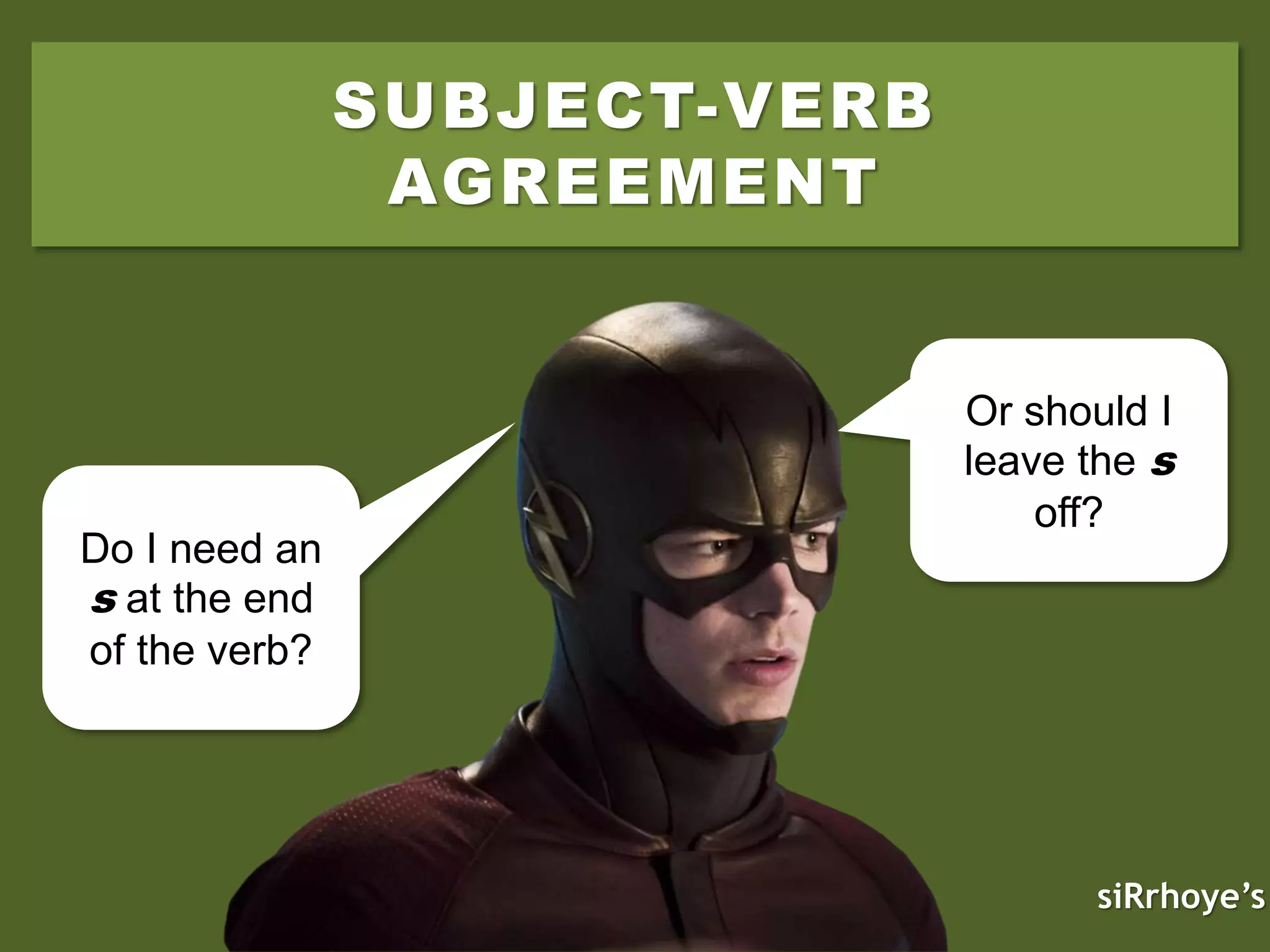 This document provides a lesson on subject-verb agreement in English. It begins with examples of singular and plural subjects and verbs. It then discusses how conjunctions like "and" can affect whether the subject is singular or plural. Certain pronouns like "everyone" and "each" are always singular. Interrupting phrases and inverted word orders can obscure the subject. The document concludes with a quick test to assess understanding of subject-verb agreement through multiple choice questions.