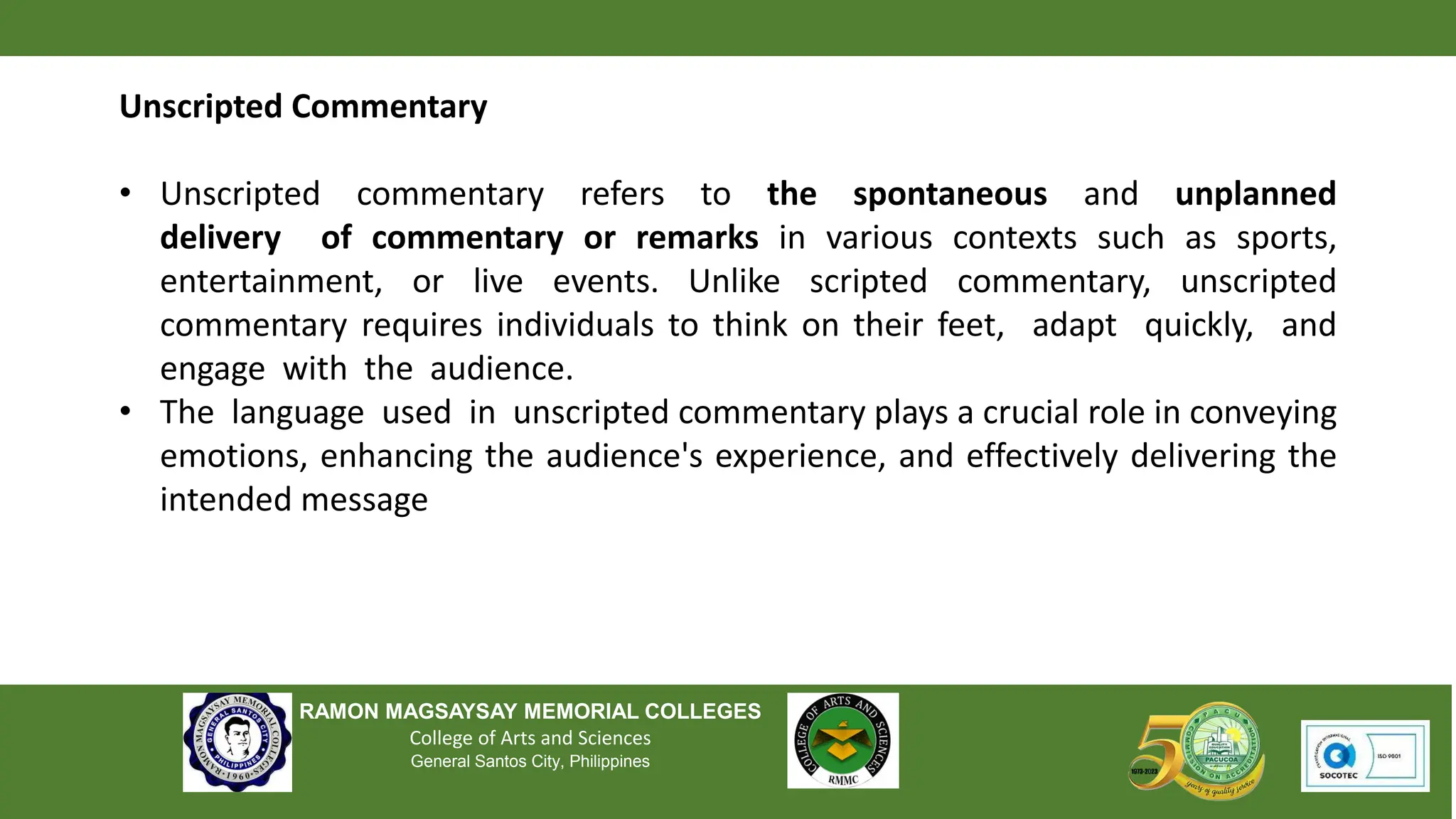 entertainment, or live events. Unlike scripted commentary, unscripted