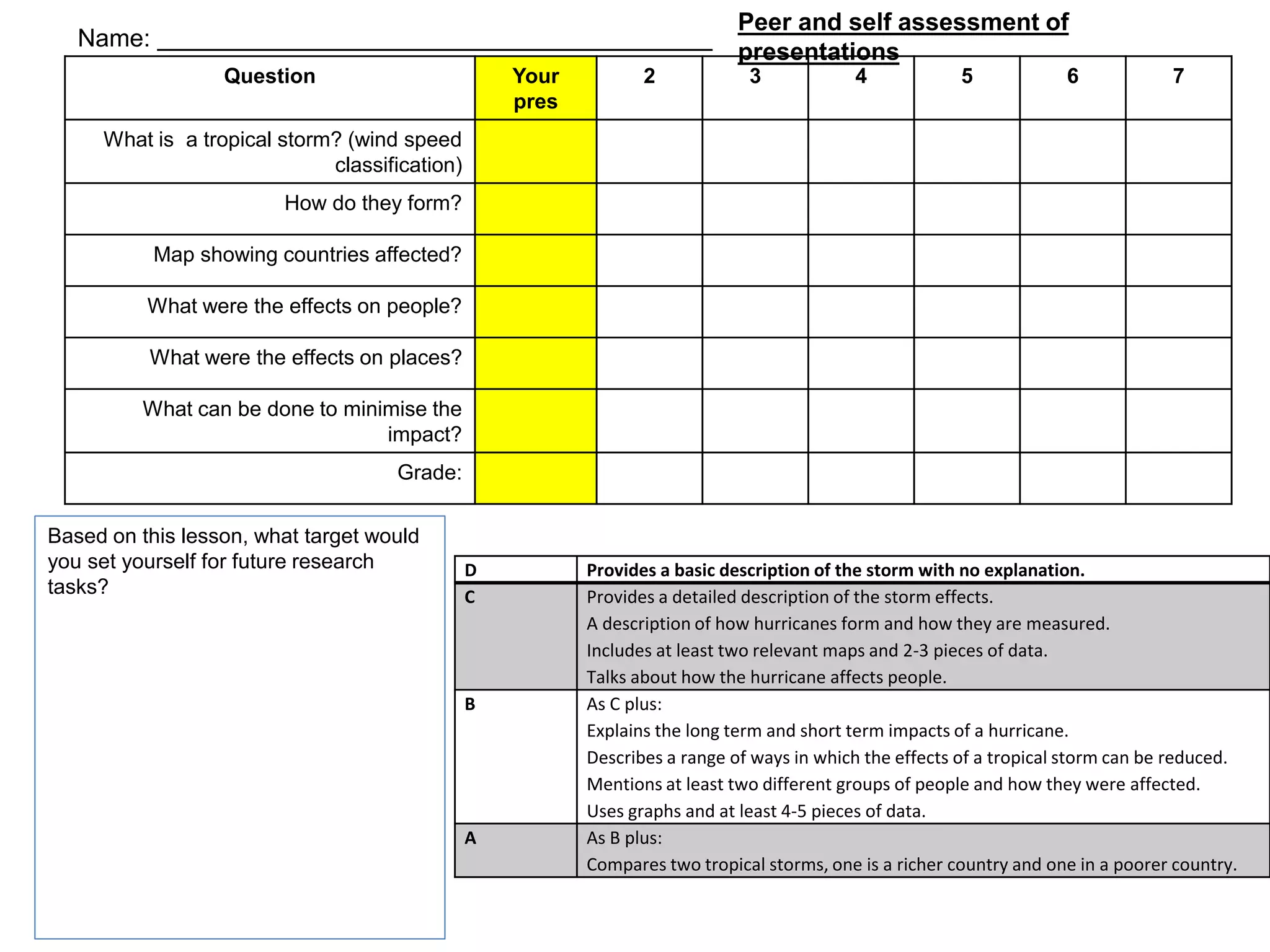 The document provides a detailed description of a hurricane, including how hurricanes form, how they are measured, relevant maps, and data on effects. It discusses the short-term and long-term impacts on people and places and describes a range of ways to reduce the effects of tropical storms. The document also compares the effects of two tropical storms, one in a richer country and one in a poorer country.