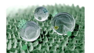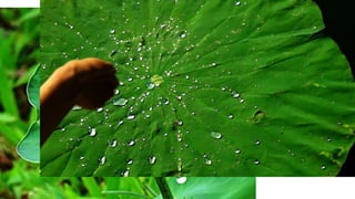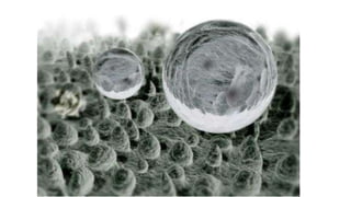 This document discusses how biomimicry studies nature and uses its solutions to solve human problems. It provides two examples: Velcro was inspired by burdock seeds sticking to fur, and lotus leaves demonstrate self-cleaning properties through microscopic bumps that cause water to bead up and roll off, taking dirt with it. Biomimicry offers improvements people would not otherwise have without observing solutions found in nature.