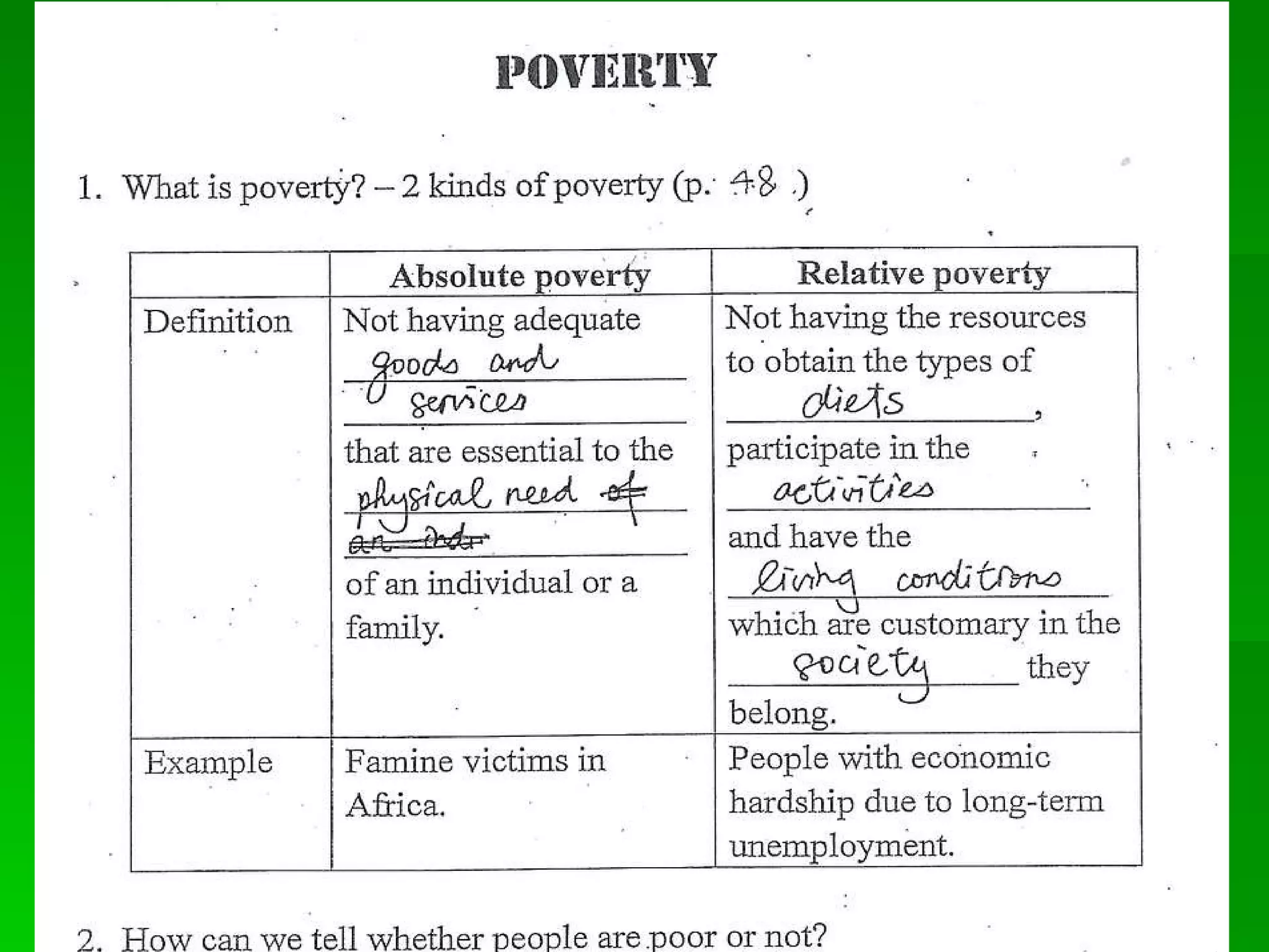 Lesson 4 - What are the impacts of poverty & activity 5 PPT