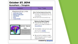 This document outlines lesson design considerations for primary education. It discusses organizing students into teams and tasks, with notes on management. The objectives for the lesson are to leverage collaboration, communication, creativity, and critical thinking. Design elements like font, color, white space, sound, video and gaming are mentioned to engage students.