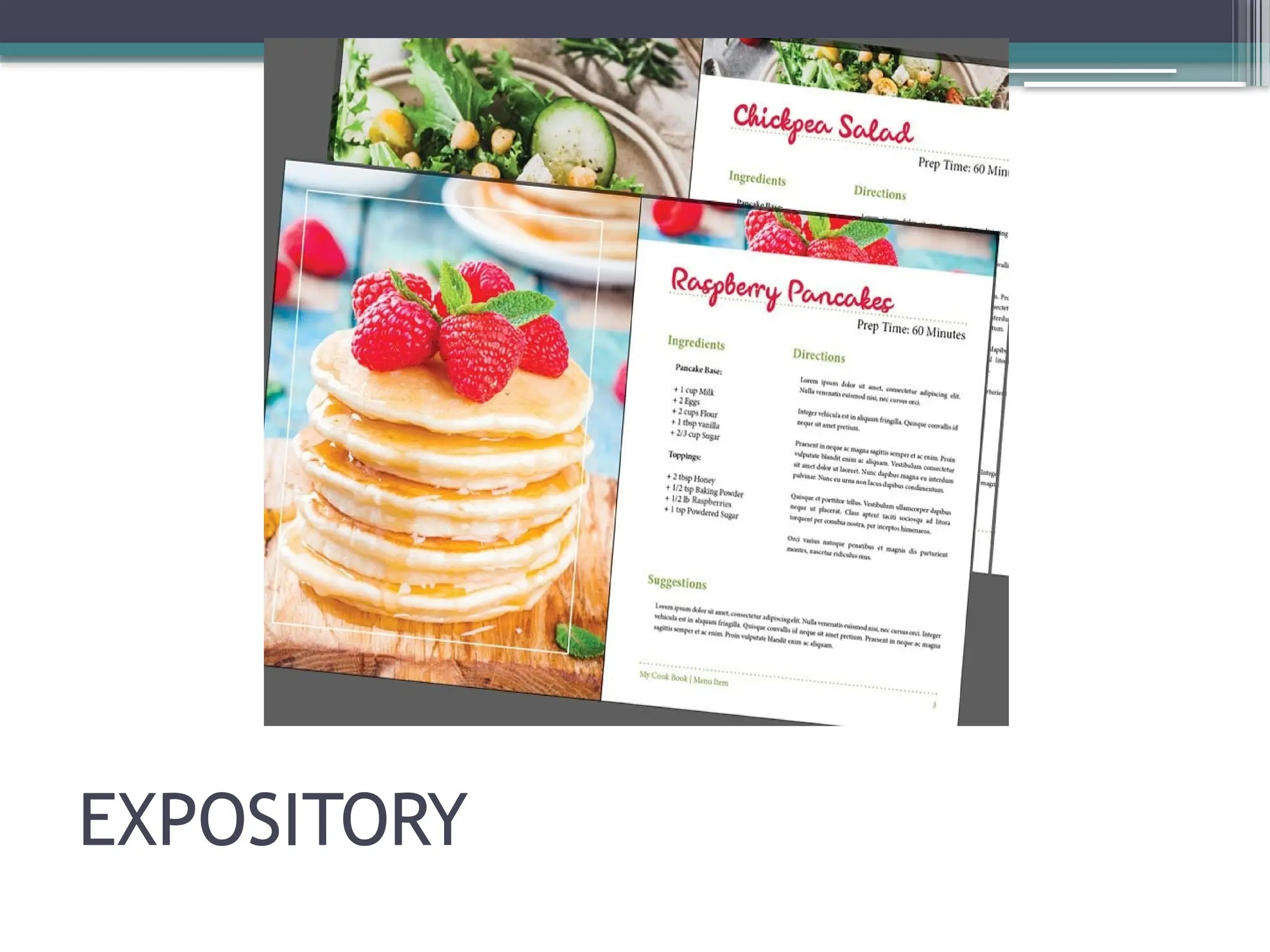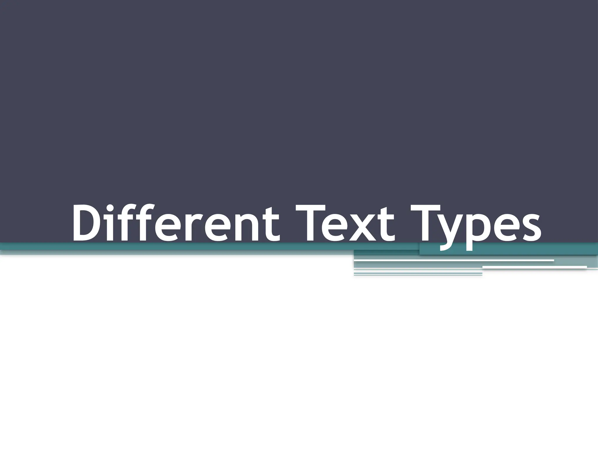 The document lists various types of text, including expository, narrative, persuasive, explanatory, factual recount, and personal recount. It highlights the differences between these text types. The context appears to relate to writing or categorizing text in educational settings.