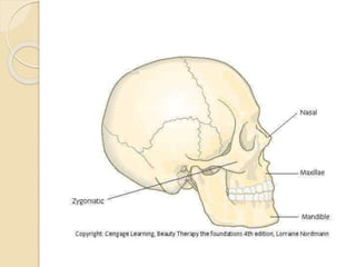This document provides information for a facial skincare treatment session, including objectives, anatomy topics, and treatment details. Key points:
