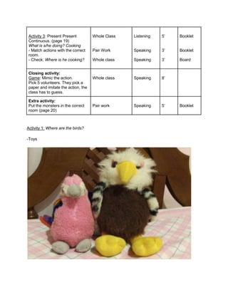 * To present Present Continuous and review the vocabulary seen last class (bedroom,