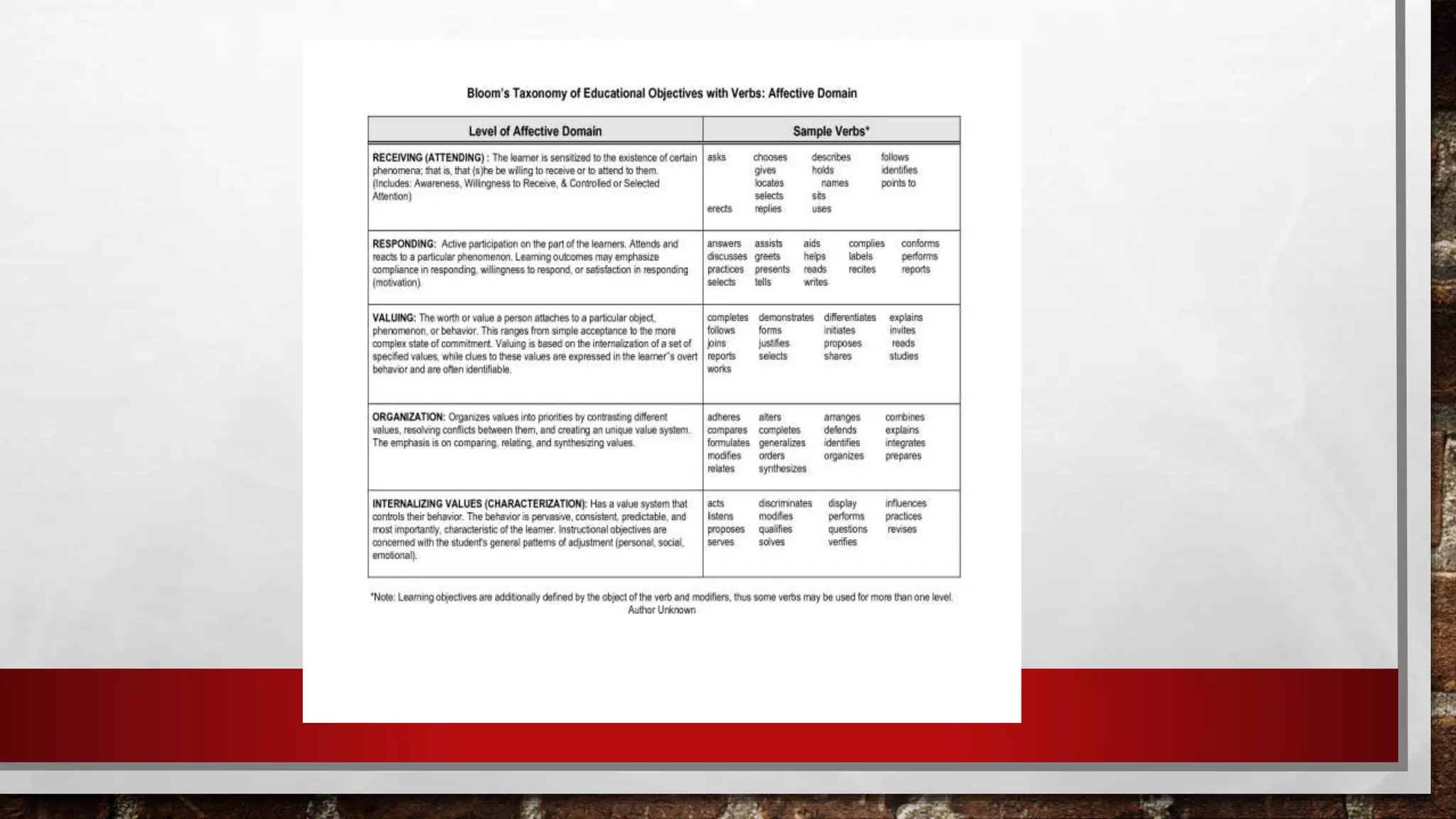 3. Bloom's Taxonomy is referenced as a framework for classifying educational objectives according to domains like cognitive, psychomotor, and affective skills.