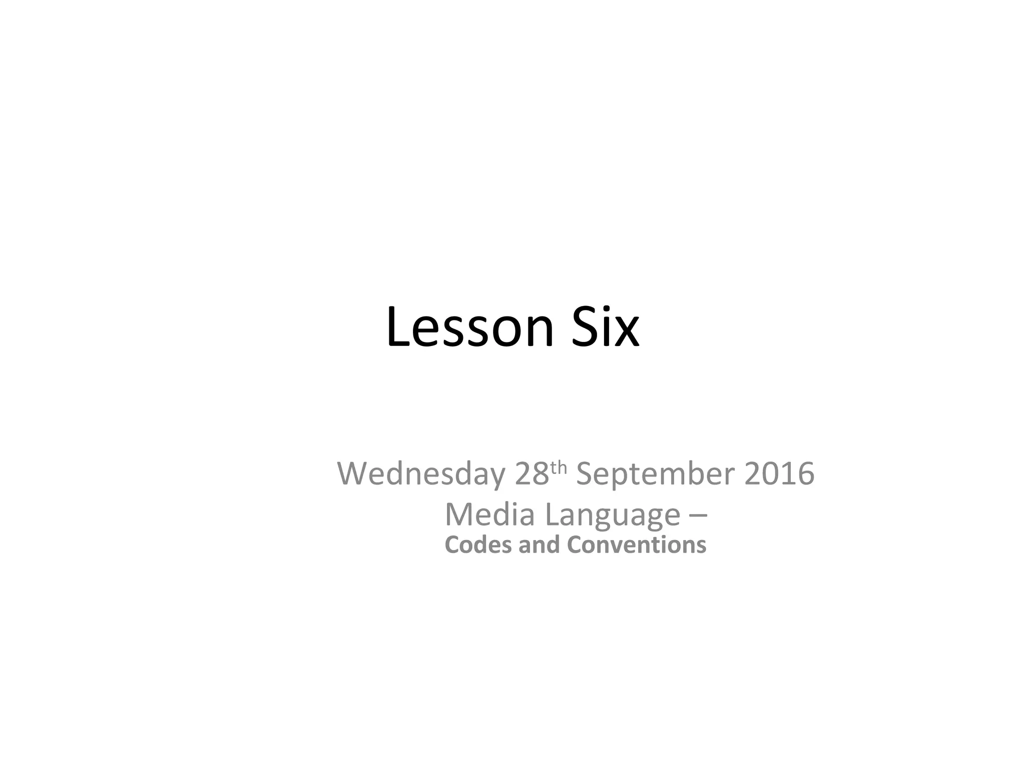 This lesson plan outlines learning about media codes and conventions. Students will analyze visual media like film trailers to understand how meaning is communicated through images and the "language" of different mediums. They will discuss what codes and conventions are, such as the accepted plot structures and character types of different genres. As an assignment, students will work in groups to design and pitch their own TV drama by developing the plot, characters, setting, and explaining how it fits the codes and conventions of the chosen genre.