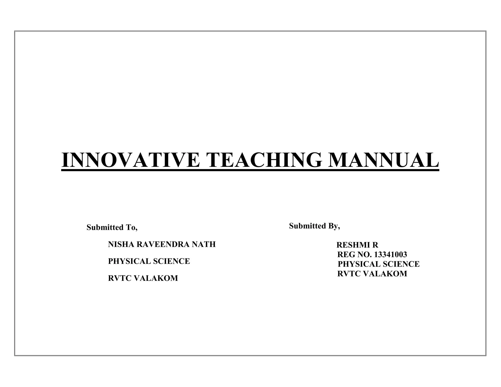 This document outlines a teaching manual for an 8th standard physics lesson on the solar system. It details the learning outcomes which are to develop students' factual and conceptual knowledge of the solar system's components through observation, classification, analysis and comparing planetary features. The teaching procedure and resources are not described, but the document explains it will involve classroom interaction and presentation to introduce the topic, followed by a formative review of students' understanding.