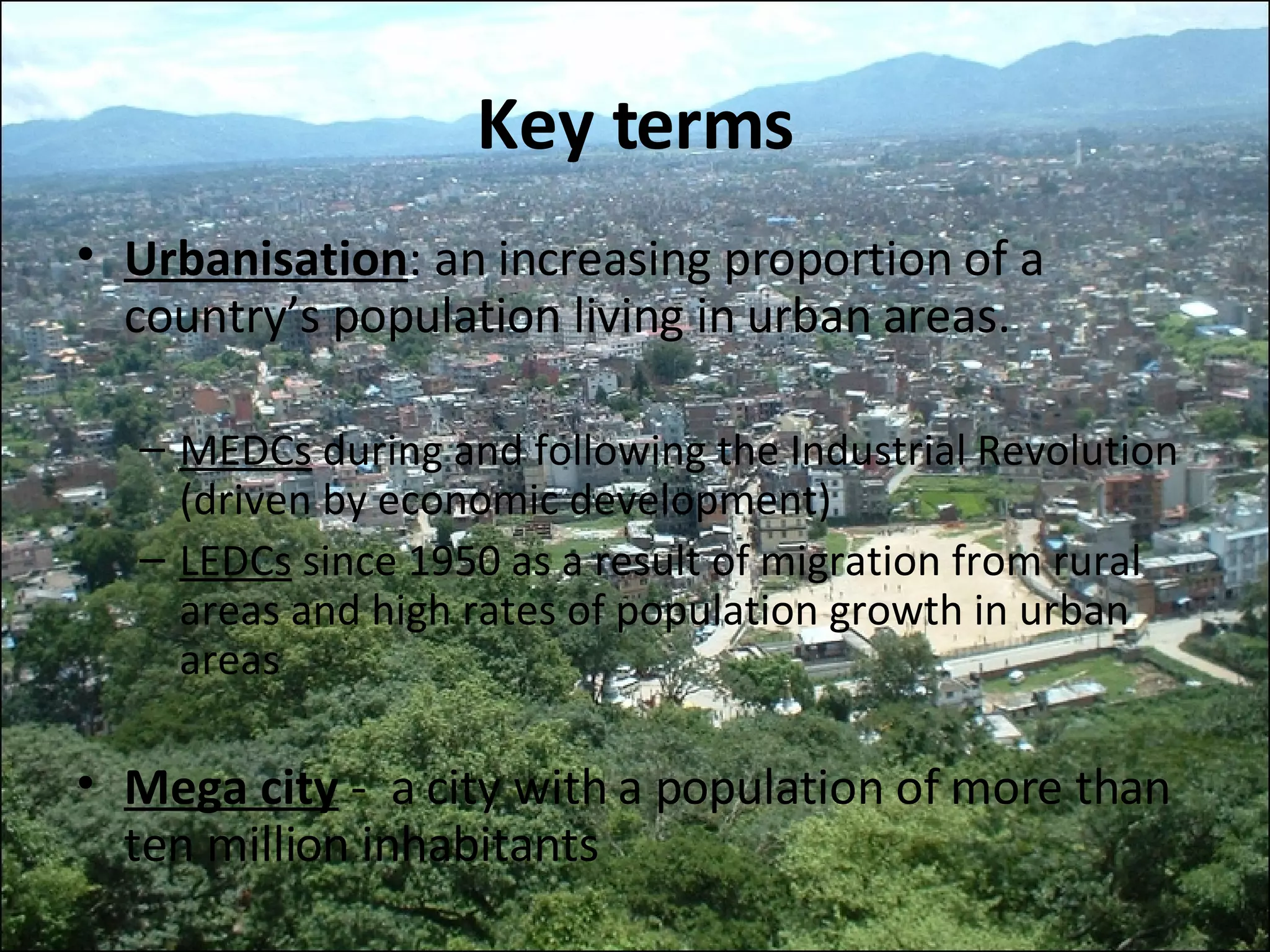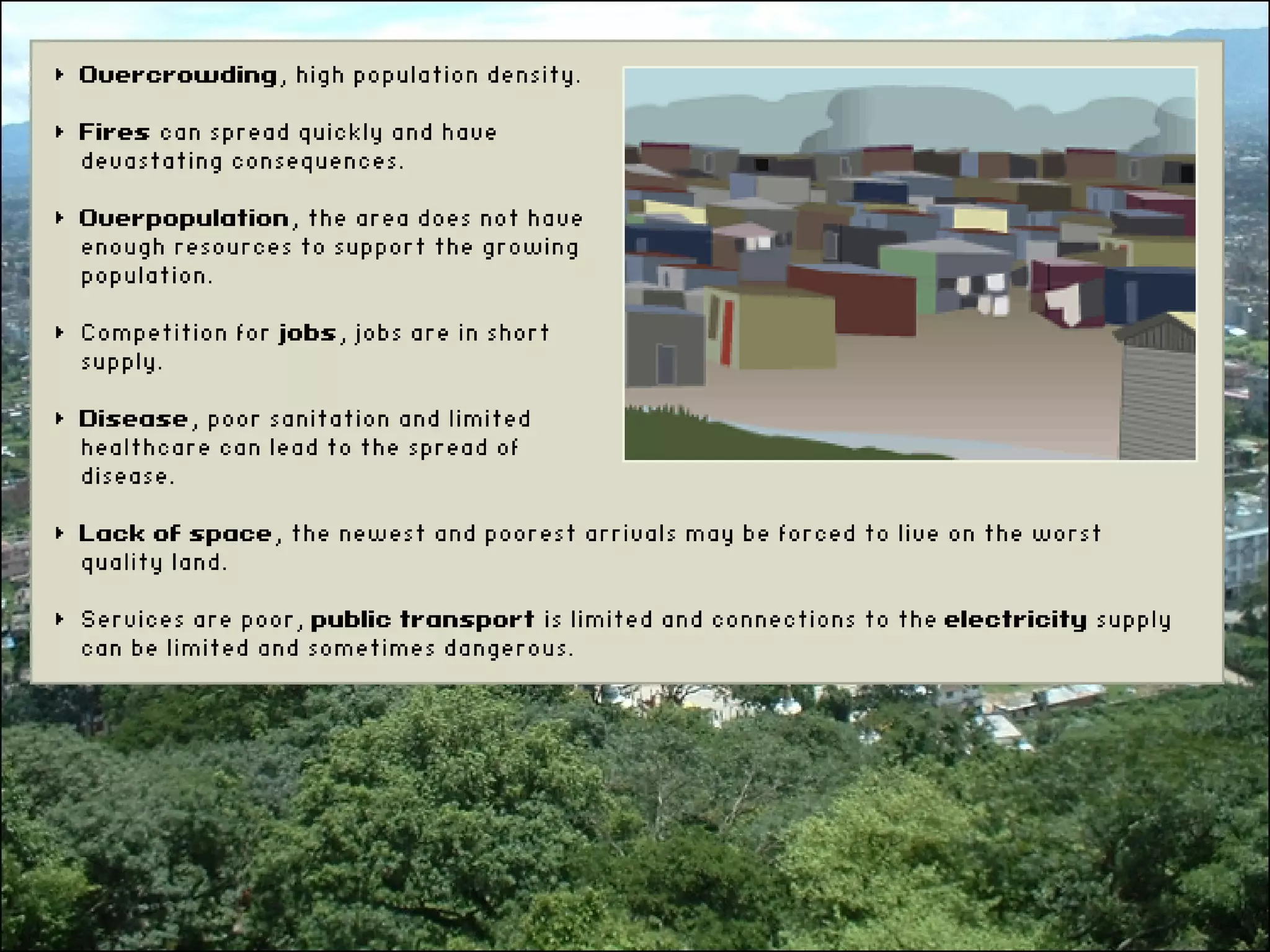 The document summarizes urbanization in less economically developed countries (LEDCs) and its consequences. It describes that over 1 billion people live in urban slums, with the highest concentration in Asia where 60% of the world's slums are located. In the slums of Manila, Philippines, over 40% of the urban population live in dense, unsanitary conditions. The document profiles three families living in difficult circumstances in Tondo, one of the poorest and most overcrowded slum areas of Manila, and discusses the problems faced by slum communities including inadequate and unsafe housing, lack of basic services, and insecure land tenure.