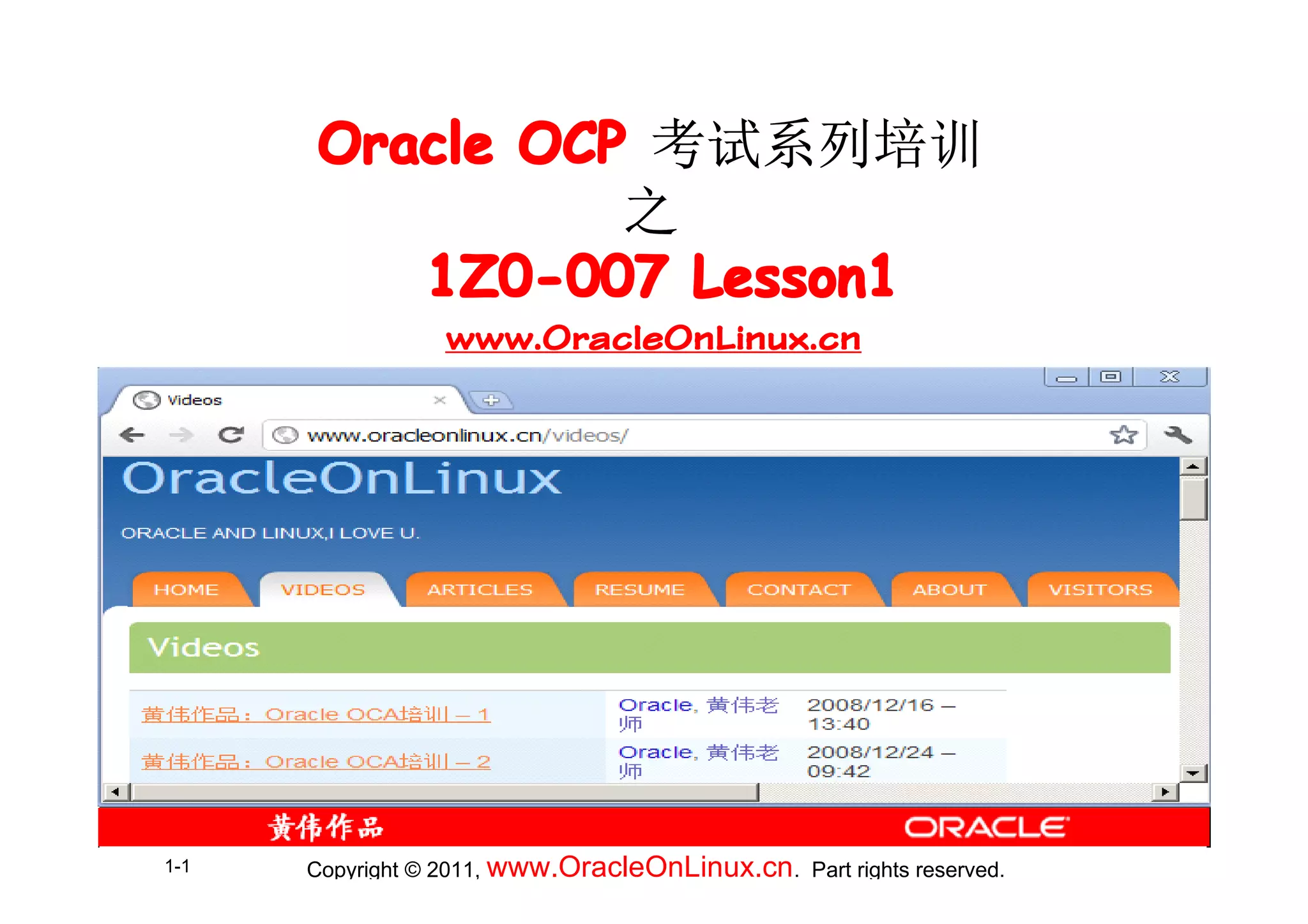 The document provides training content for the Oracle OCP 1Z0-007 exam. It covers topics like retrieving data using the SQL SELECT statement, including basic SELECT statements, column aliases, arithmetic expressions, null values, concatenation operators, and using the DESCRIBE command. It also discusses the differences between SQL statements and iSQL*Plus commands, and provides examples of interacting with iSQL*Plus and script files. Practice questions at the end test understanding of concepts like SQL statement capabilities, column alias usage, and iSQL*Plus features.