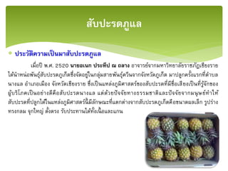 เมื่อปี พ.ศ.2520 นายอเนก ประทีป ณ ถลาง อาจารย์จากมหาวิทยาลัยราชภัฎเชียงราย